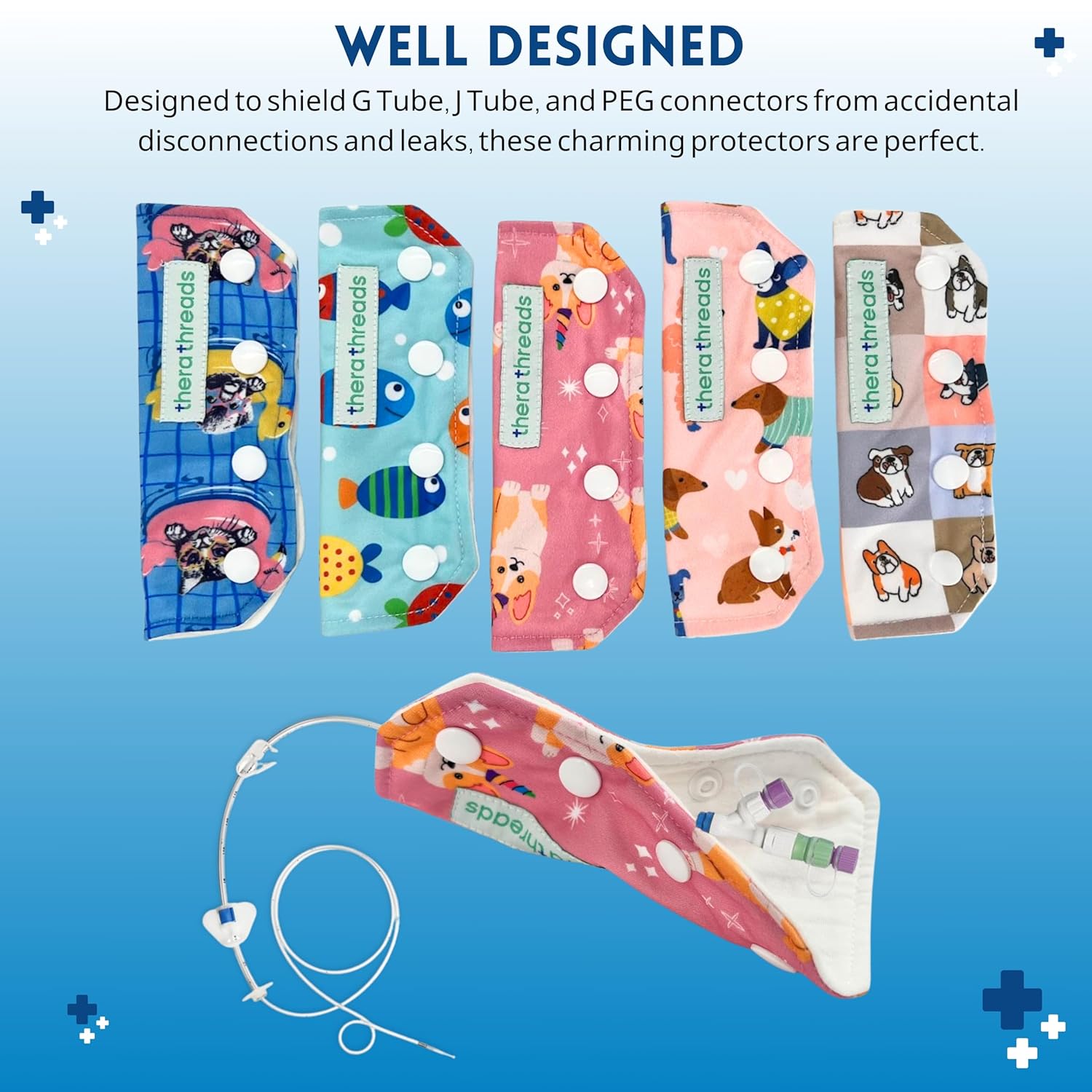 - Ensure your little one's comfort and safety with our Feeding Tube Connector Protectors. Designed to shield G Tube, J Tube, and PEG connectors from accidental disconnections and leaks, these charming protectors are perfect for active, playful kids.