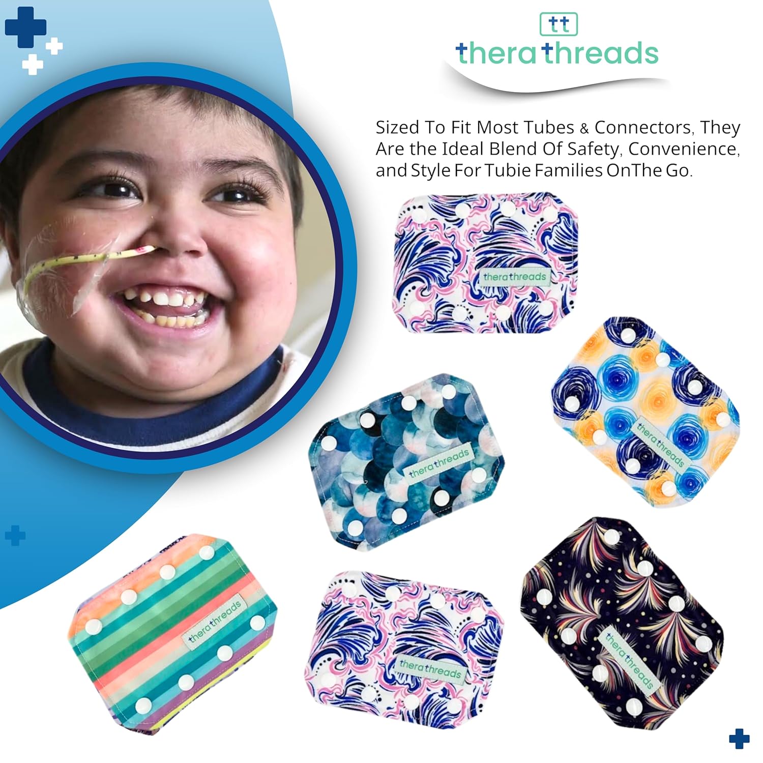 therathreads' multi-purpose Tube Connector Protector, expertly designed for G, J, and PEG tubes. This must-have accessory ensures safety, comfort, and convenience for your child's enteral feeding needs. It features a dual-layer design with a water-resistant exterior and absorbent interior, keeping connectors secure, clean, and dry. Easy to use and machine washable, it's the ideal solution for busy caregivers seeking reliability and ease of maintenance. Trust therathreads for thoughtful, durable feeding tube care.